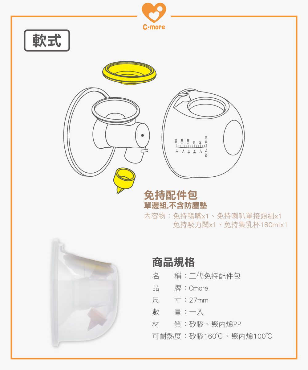 ☑本產品僅適用於HandFree 2.0型號吸乳器