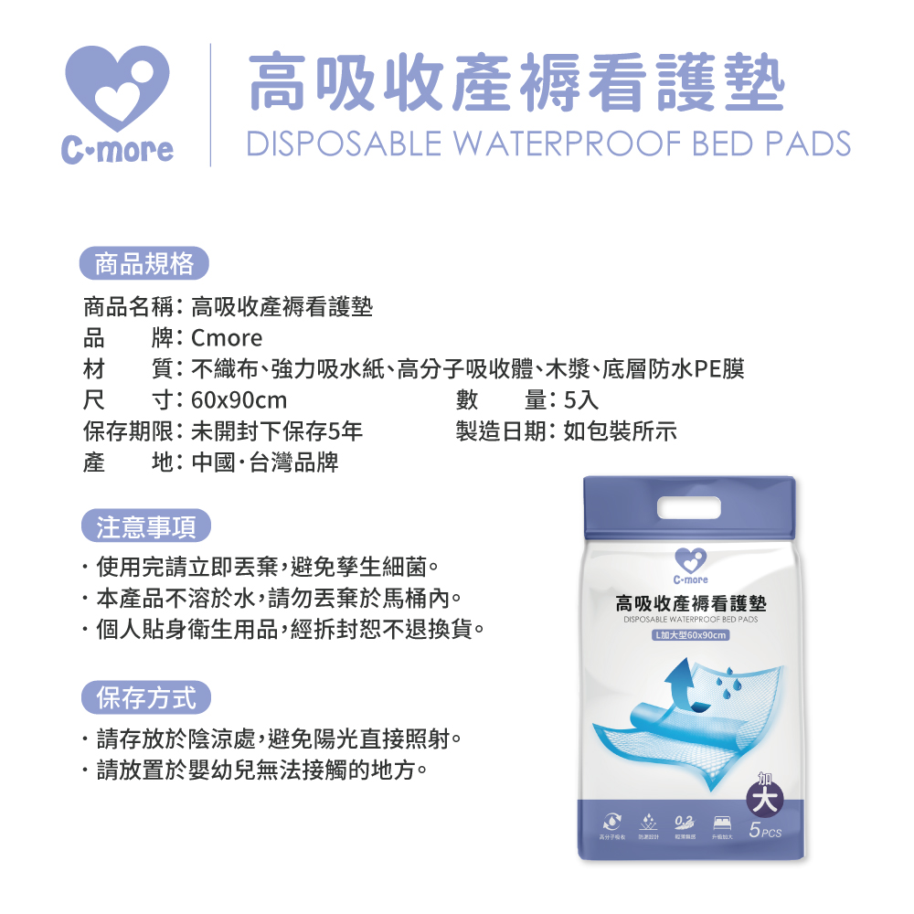 高吸收產褥看護墊 (加大型/5片裝)