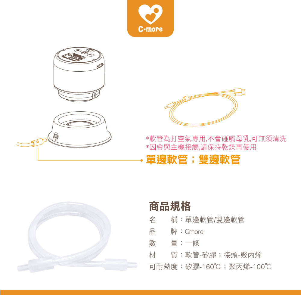 ☑可自行拔除軟管上的接頭,銜接他牌吸乳器做使用